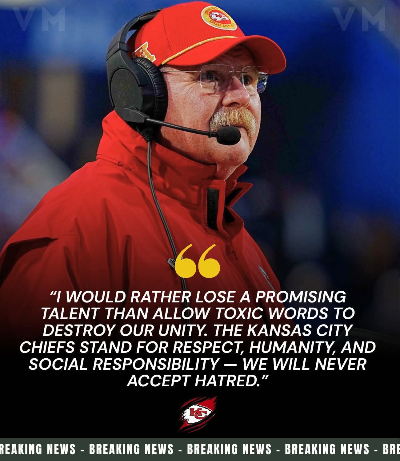 CHIEFS SHOCKER 🚨: Rookie immediately cut after fiery outburst on Charlie Kirk — calling him a r@cist, a f@scist mouthpiece, and a thre@t to LGBTQ, immigr@nts, and min0rities. Head Coach Andy Reid angrily declared: ‘I’d rather lose a player than tolerate h@tred. These toxic values will never exist within the Kansas City Chiefs!’” –