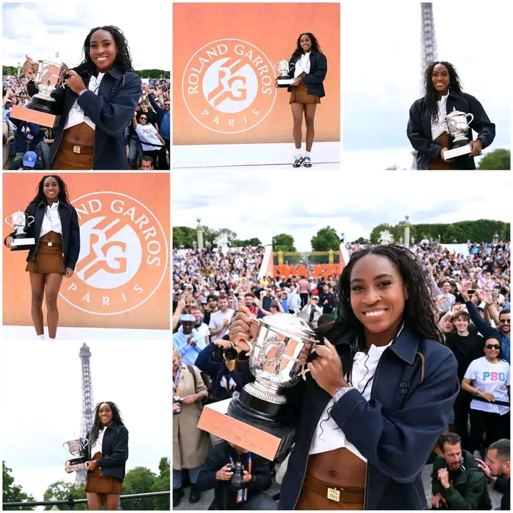**🎉 Congratulations Coco Gauff at La Tribune Concorde with the Trophy! 🏆😁 #RolandGarros**Congratulations 🎉 to Coco at la Tribune Concorde with the trophy 😁 #RolandGarros…WATCH THE SPEECH THAT IS MAKING WAVES ON THE INTERNET…