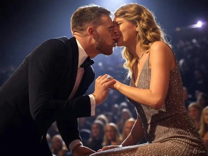 Taylor’s joy was palpable as she pulled Travis into a passionate kiss, sealing their engagement with love and adoration.