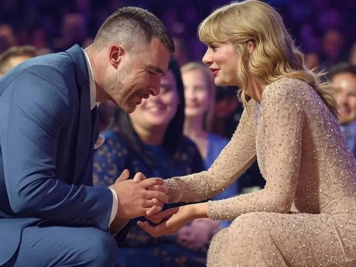 A wave of excitement surged through the audience, with many wondering if this was the moment fans had been waiting for. Taylor Swift’s face lit up in an expression of pure joy, and in a gesture that seemed straight out of a romantic fairy tale, Travis knelt down on one knee.