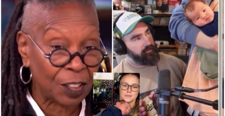 In a surprising turn of events, Whoopi Goldberg has ignited a heated debate by publicly criticizing Jason Kelce and Kylie Kelce for featuring their newborn daughter, Finn Anna Kelce, on their respective podcasts, New Heights with Travis Kelce and Not Gonna Lie, just days after Kylie gave birth.