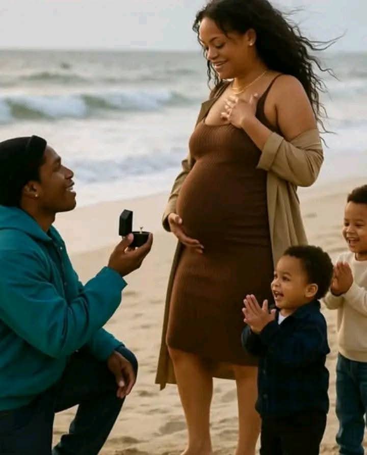 The world froze in awe when A$AP Rocky chose a windswept, romantic beach as the stage for one of the most unforgettable proposals in pop culture history. Just days before the birth of their third child, Rocky knelt down in the sand, ocean waves crashing behind him, and delivered 10 simple words that shook everyone present: “I want forever with you, will you marry me?”