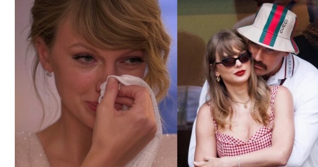 In a moment that has left fans and observers equally stunned, global music icon Taylor Swift was seen in an emotional interview, tears streaming down her face as she spoke about the relentless scrutiny of her relationship with NFL star Travis Kelce. Swift, known for her chart-topping hits and deeply personal lyrics, has rarely shown such vulnerability in public, making this interview a poignant moment in her career.