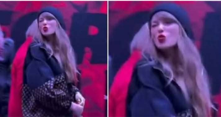 Video: Taylor Swift Arrives to Travis Kelce, Chiefs’ AFC Title Game vs. Allen, Bills Blowing KISSES to fans as she Pairs a Louis Vuitton Hoodie With a Miniskirt for Travis Kelce’s Game Against the Buffalo Bills…WATCH👇👇