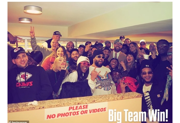Security ushered everyone inside to the private bash, with sources telling DailyMail.com the booking was only confirmed to be going ahead if the Chiefs won.